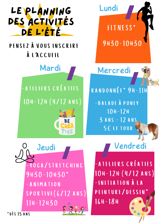 Cet été, l’ennui n’est pas une option au Camping Les Arbousiers*** ! Nous avons concocté un programme d’activités variées pour satisfaire toutes les envies, des plus petits aux plus grands :